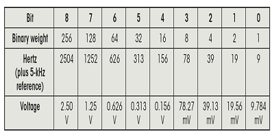 3.該表顯示了刻度2的頻率到電壓的轉(zhuǎn)換。