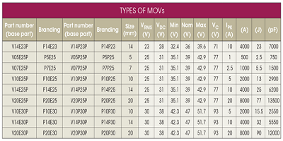1.金屬氧化物壓敏電阻(MOV)具有各種尺寸和尺寸,可用于廣泛的應(yīng)用。徑向鉛盤類型是最常見的版本