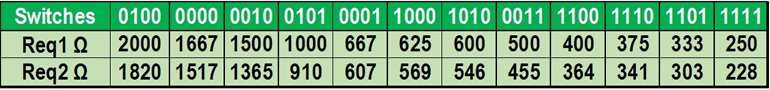 表1:不同開關(guān)設(shè)置和相應(yīng)方程式的電阻器組合