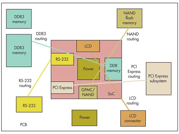 如果一個特定組件具有嚴格的布線約束,則可能會限制其他組件在特定區(qū)域內的放置。例如,諸如DDR3的高速接口需要恒定的參考平面并與其他接口有效隔離。這將限制其他設備在DDR3存儲設備一定距離內的放置。